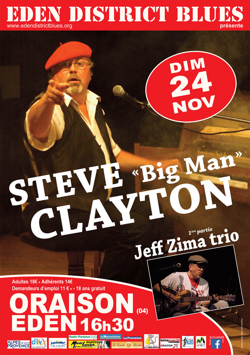 Steve CLAYTON, né en 1962 à Birmingham (GB) commence à s’intéresser à la musique déjà à l’âge de 10 ans. Son père lui achète un vieux piano et le petit Steve commence à prendre des leçons. Après 5 ans d’études musicales son professeur compose pour lui un blues qu’il doit étudier. Ces rythmes, ces sons sont une révélation pour le jeune Steve, qui – jusqu’alors – ne connaissait que le piano classique. Sa collection de disques augmente très rapidement; il consacre tout son argent de poche pour s’acheter des disques de Cow Cow Davenport, Albert Ammons et Memphis Slim. A partir de ce moment-là il n’étudie plus la musique classique – il préfère reproduire ce qu’il entend. Après sa formation scolaire il joue dans plusieurs groupes de blues et peut y parfaire ses talents. Peu de temps après on le surnomme « The Ivory Maradona » ou « The Big Man of Boogie Woogie » et on lui demande d’accompagner au piano des musiciens légendaires comme Louisiana Red, Shuggy Otis et Carey Bell pendant des tournées en Europe. Il prend part aussi à la production des CD d’autres musiciens. On peut l’entendre entre autre sur le CD d’Otis Grand « He knows the blues », récompensé d’un prix du jazz.